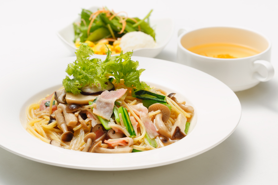 キノコとベーコンのパスタ