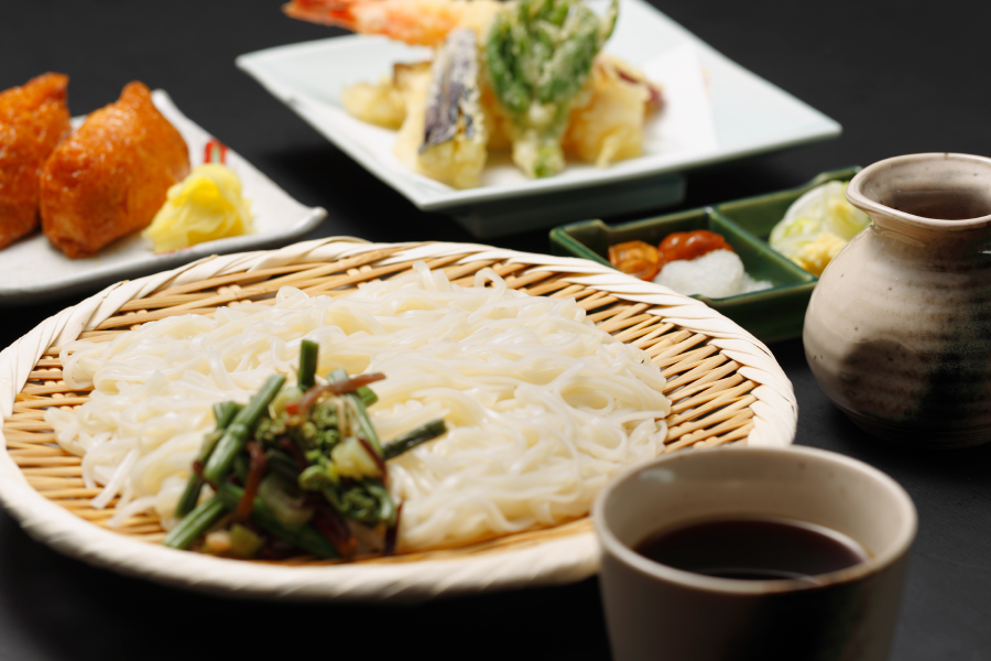 稲庭うどん、季節の天ぷら添え