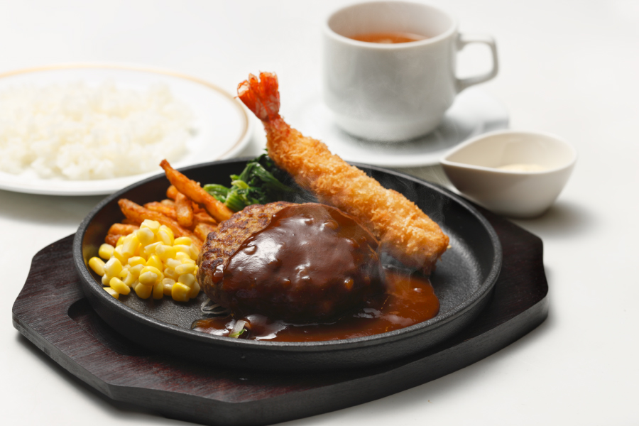 デミハンバーグと海老フライ