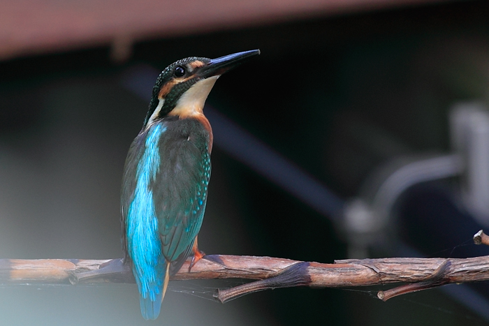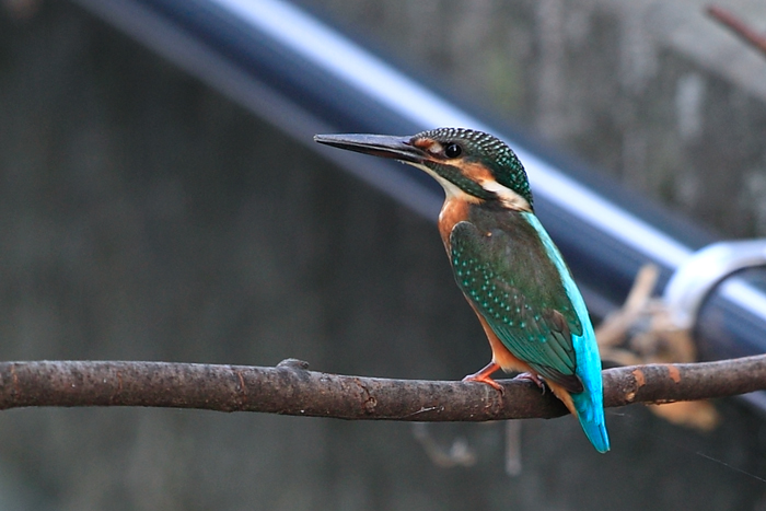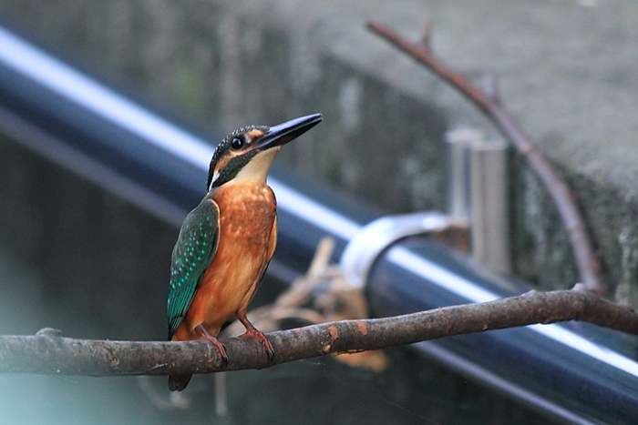 自宅横の水路に最近良く遊びにくるので”止り木”を2本置いてみました。