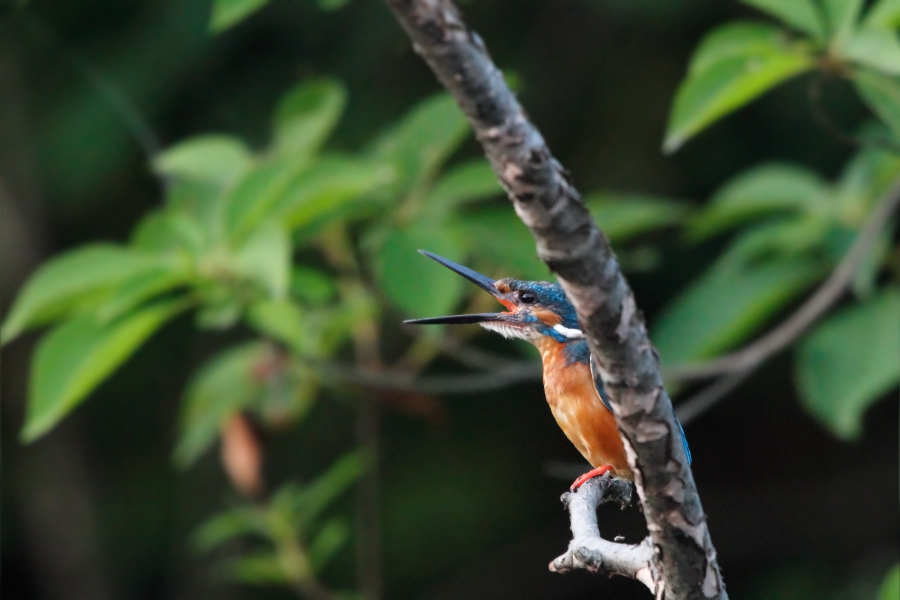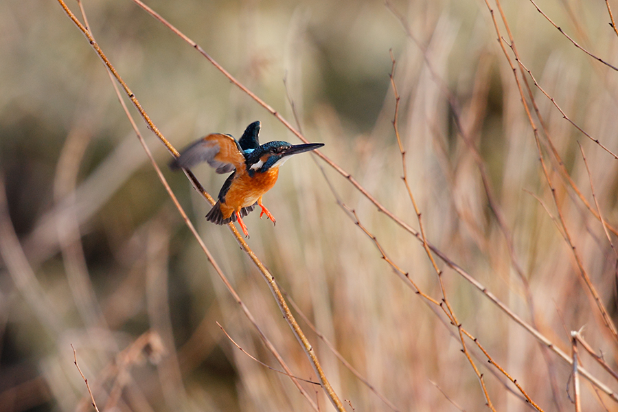自慢のオレンジも色褪せている子育て中のオス。思わぬ近距離で草が被ってしまった。