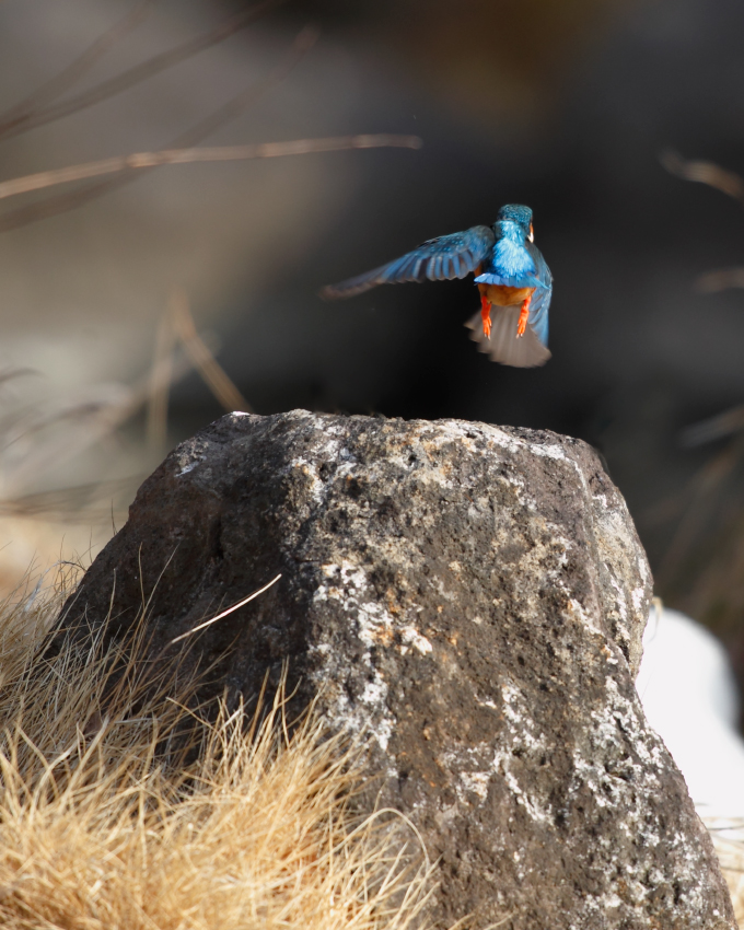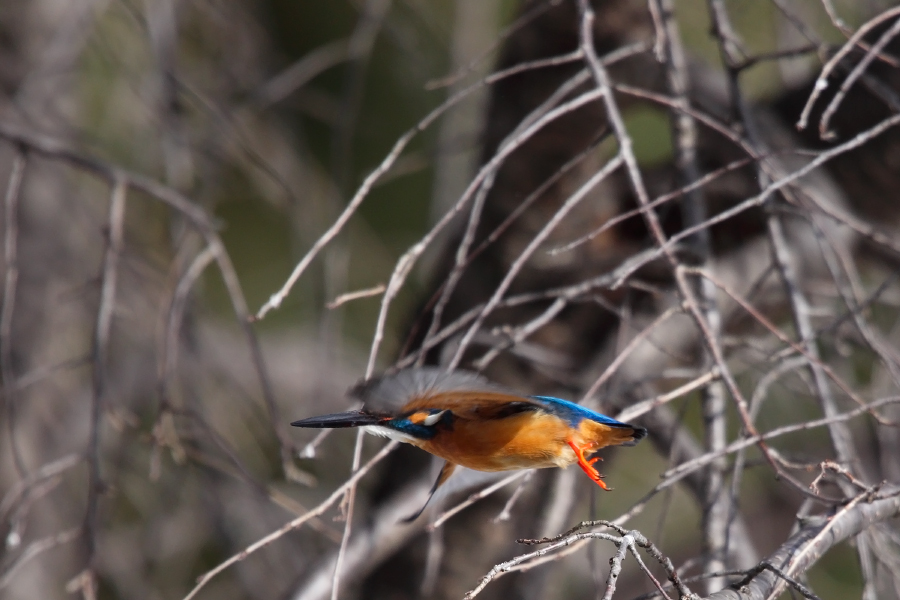 今年も自宅横の水路にやってきました。・・・テリトリーで餌を獲れず痩せている。